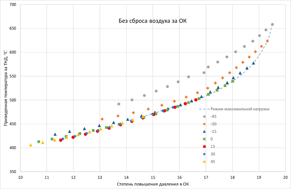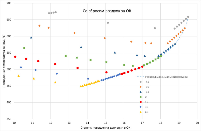 А при работе ГТД со штатным сбросом воздуха за ОК говорить о какой-либо единой приведенной характеристике вообще не приходится.