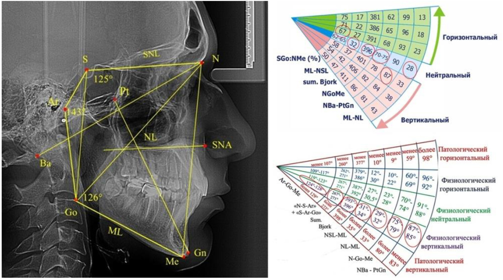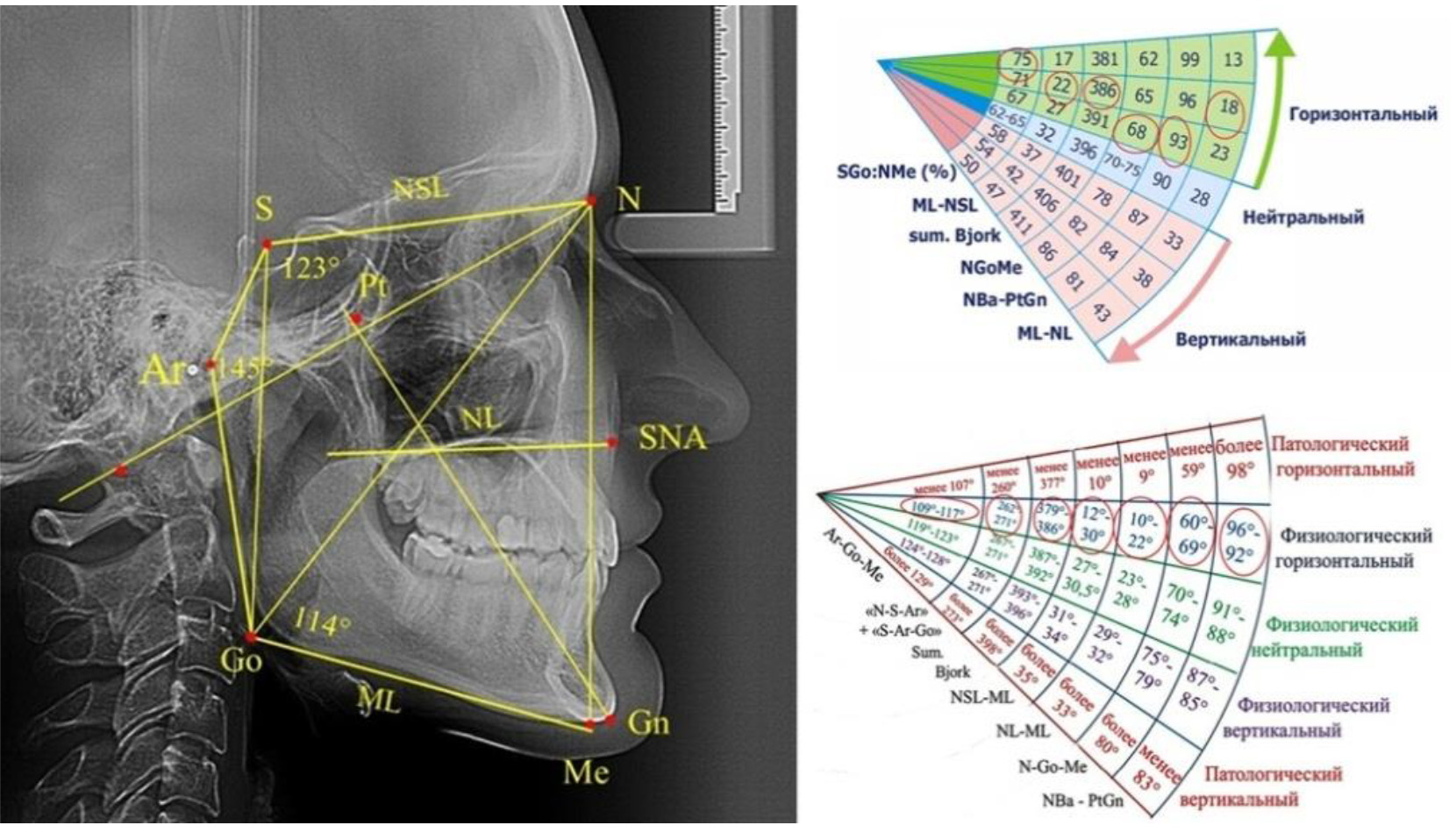Аналитический обзор угловых параметров лица с различными типами роста по данным телерентгенографии
