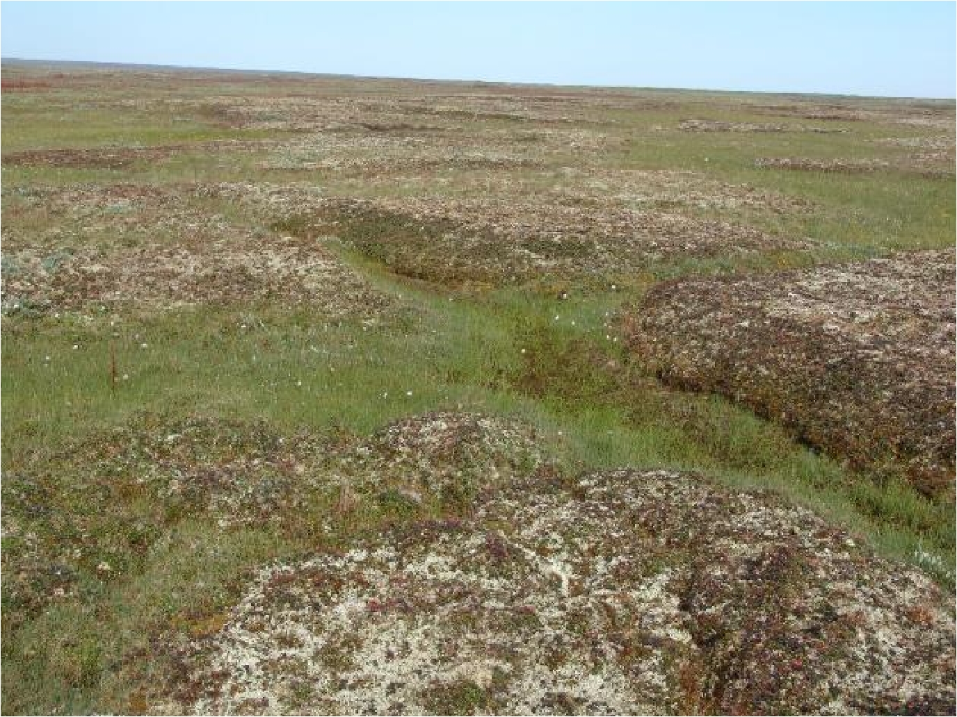 Рис. П8. Местообитание полигонально-трещиноватого болота (ТЕР Tephroserido atropurpureae–Polytrichochorietum stricti).
