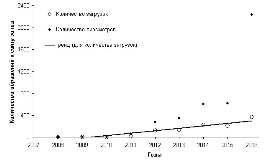 Аналогичный вид имеет и динамика обращений к странице журнала в eLibrary – рис. 3. Из данного рисунка можно заключить, что в разные годы от 16 до 44% просмотров заканчивается скачиванием статей (вероятно, понравившихся читателю).